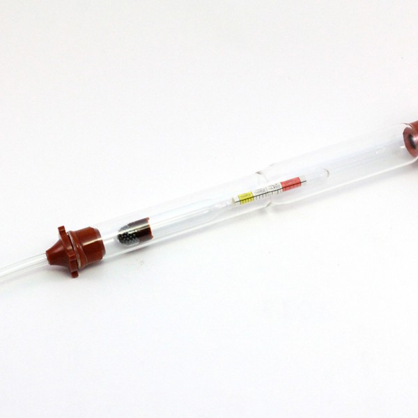 Kuei Yih Rubber's Battery Hydrometer is a pipette type with a compressible bulb and rubber tube with fittings to a glass body. The glass body contains a glass float that is calibrated with colored zones to show charged, partly charged and unchanged battery conditions.