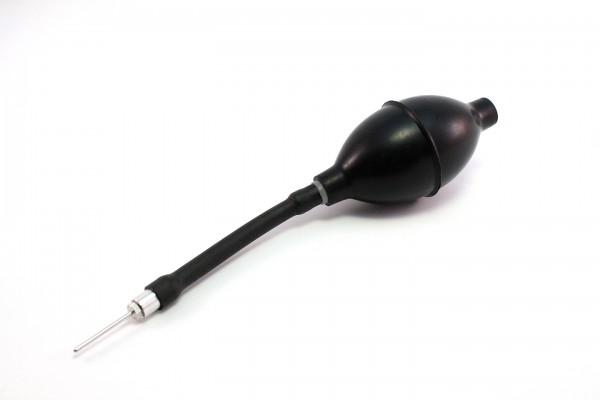 Standard rubber bulb with 2 white PVC connections or metal connections.